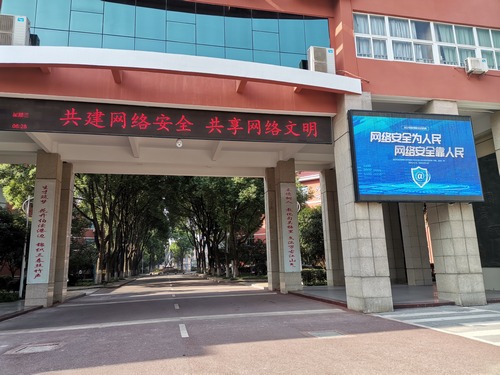 学校通过电子LED显示屏滚动播放网络安全宣传标语“共建网络安全,共享网络文明”,LED大屏上播放主题宣传海报;利用微信公众号转载央广网宣传内容:内容为“网络安全为人民,网络安全靠人民”,让人们在耳濡目染中受到网络安全教育熏陶,自觉做到文明上网。